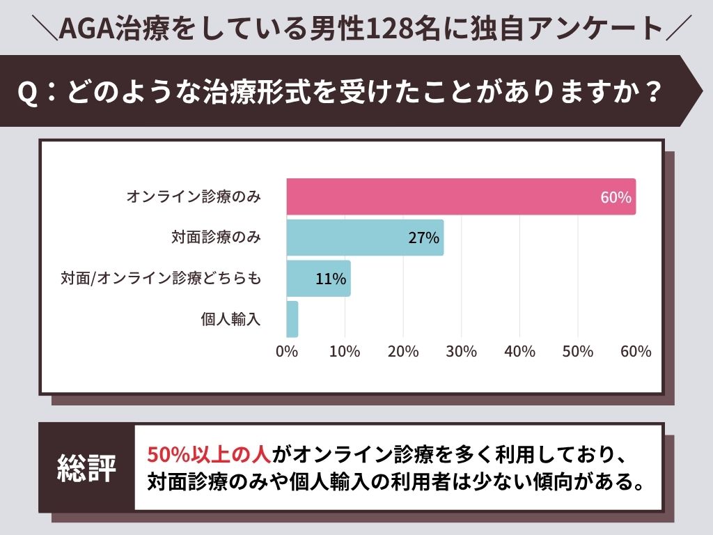 オンラインや対面で医師による診察を受けて治療に取り組む人がほとんどで、個人輸入利用者は全体の2%にとどまりました。