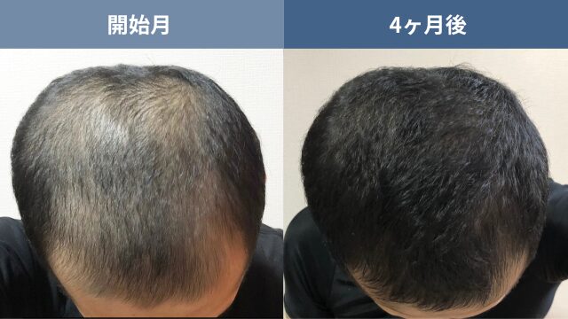 また、30代の男性では約3ヶ月の服用で4ヶ月後には頭皮全体の毛髪の密度が濃くなり、地肌がほとんど見えない状態になりました。