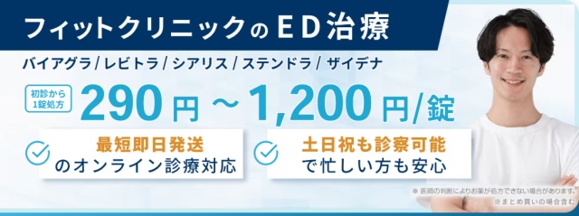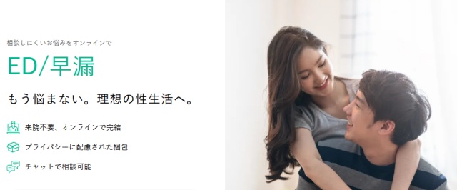 | 特徴 | ・業界大手で安心 ・ED薬取扱種類が充実 ・24時間、最短15分後の診療※1 | ・バレない配送を徹底 ・200錠の大容量がお得 ・LINE相談できる | ・値段の安さなら ・少量でも まとめての購入も◎ ・ED薬の種類が豊富 |