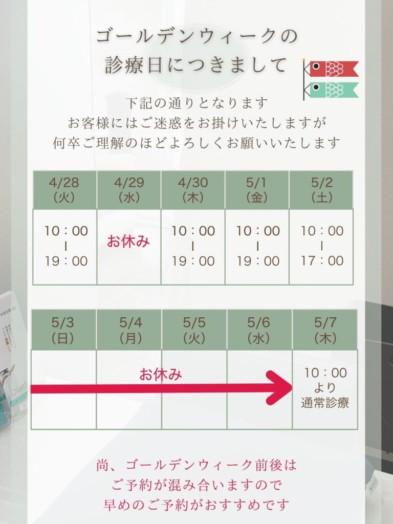 2026年ゴールデンウィーク期間中の診療スケジュールをご案内いたします。